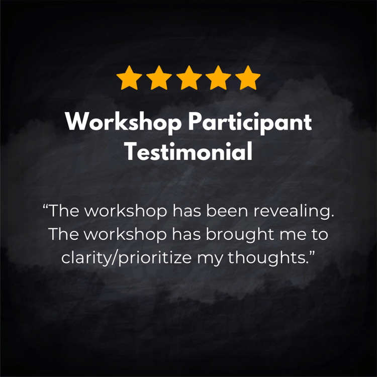 This workshop participant came with lots of questions and left with a more clear picture of what to do next. That's a success in my book!